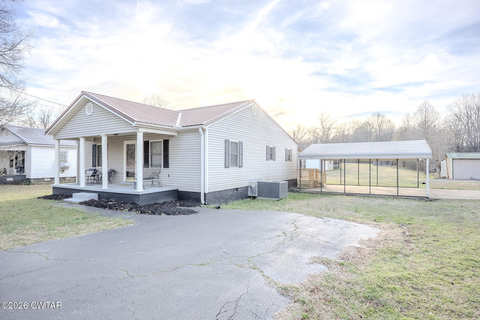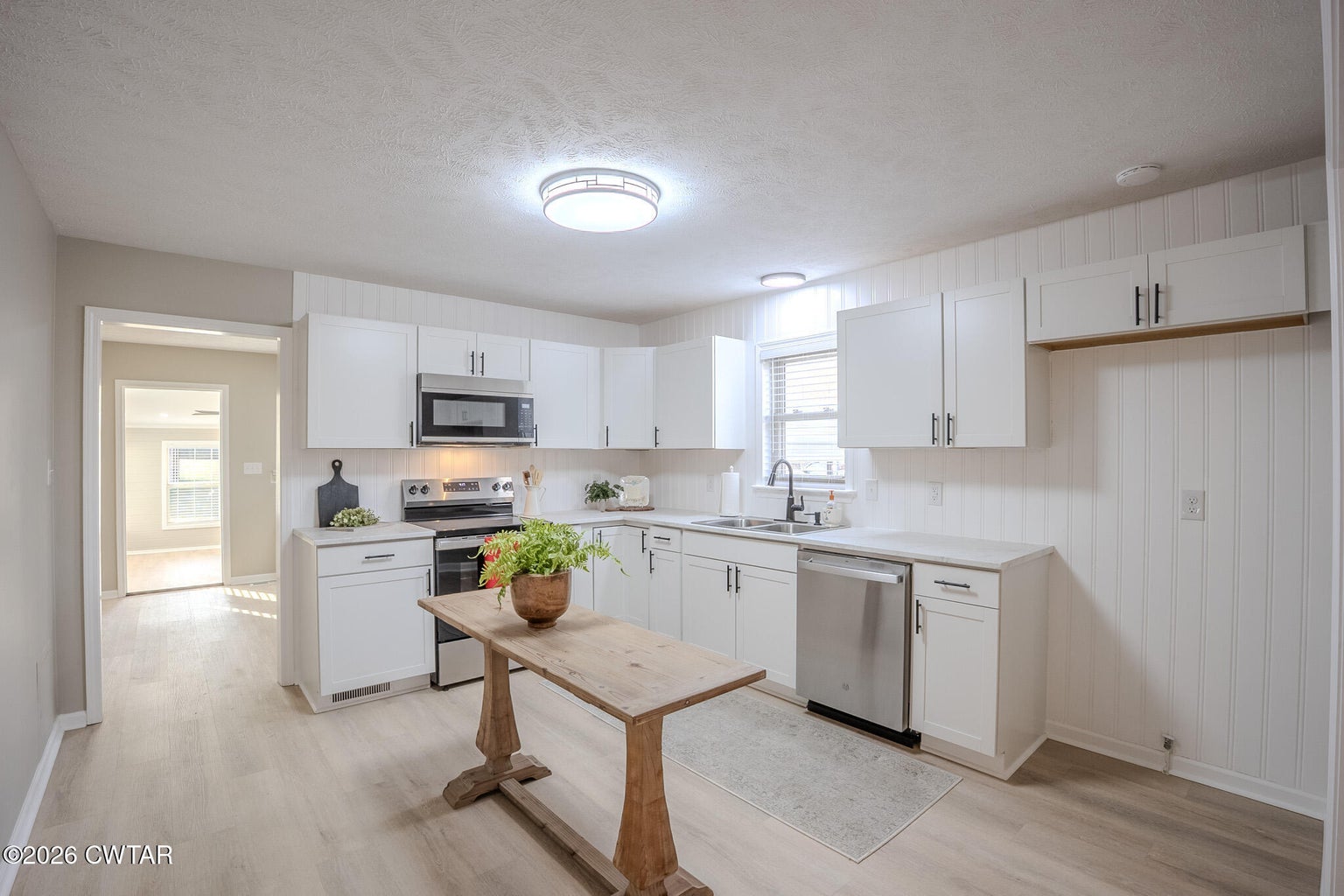 Welcome to 246 Thomas St! This immaculate, move-in ready 3BR/2BA home showcases modern farmhouse style with thoughtful updates throughout, offering small-town charm with convenient in-town access and convenient access to Hwy 45W. Exterior features include board & batten siding, architectural shingle roof with gutters, double-pane vinyl windows, detached 2-car carport, fenced backyard, storage building complete with ramp for easy access, and upgraded concrete porch, sidewalk, and driveway.