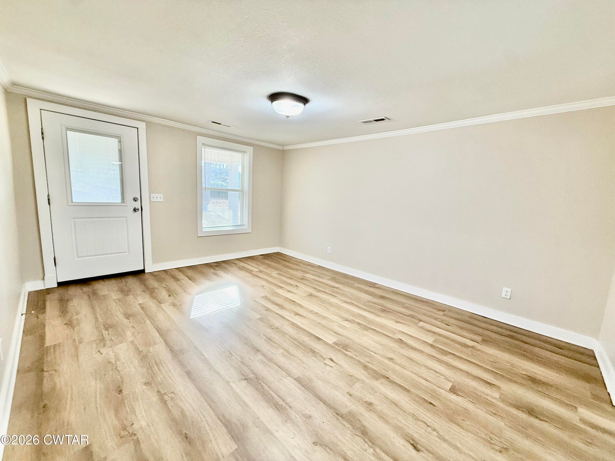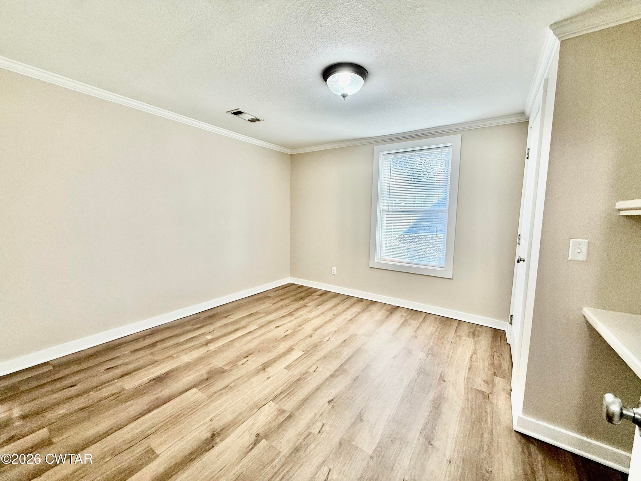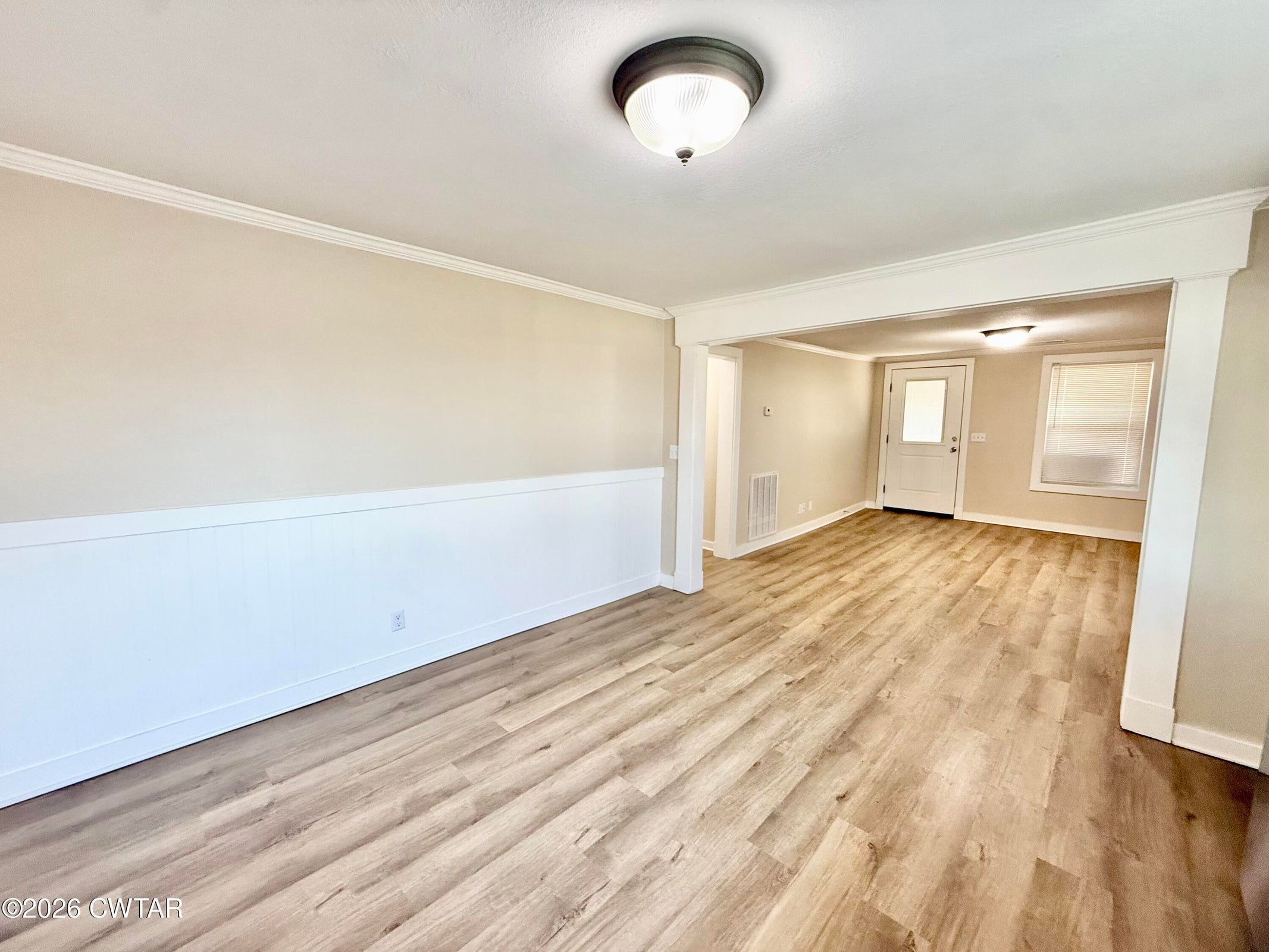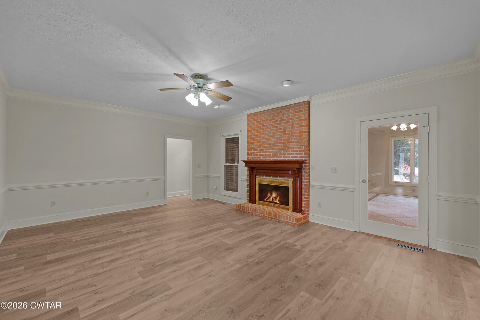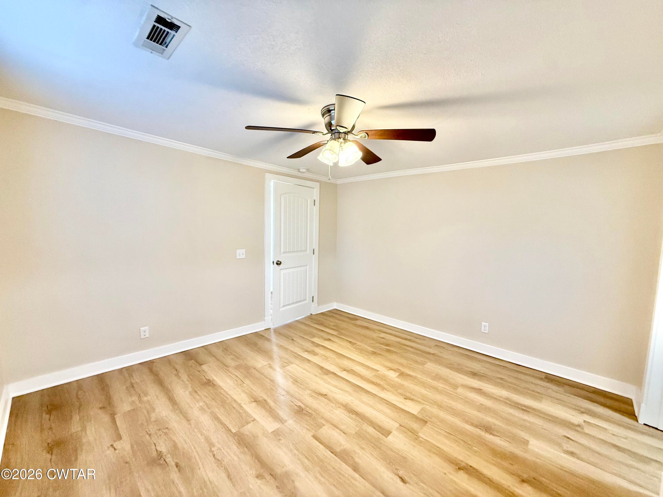 The mature shade trees enhance outdoor enjoyment while helping maintain a cooler, more comfortable setting during hot summer months. A relaxing covered front porch adds classic Southern charm — perfect for morning coffee or unwinding at day's end. Inside, enjoy durable wide-plank LVP flooring throughout — no carpet — paired with decorative crown molding and neutral paint colors.