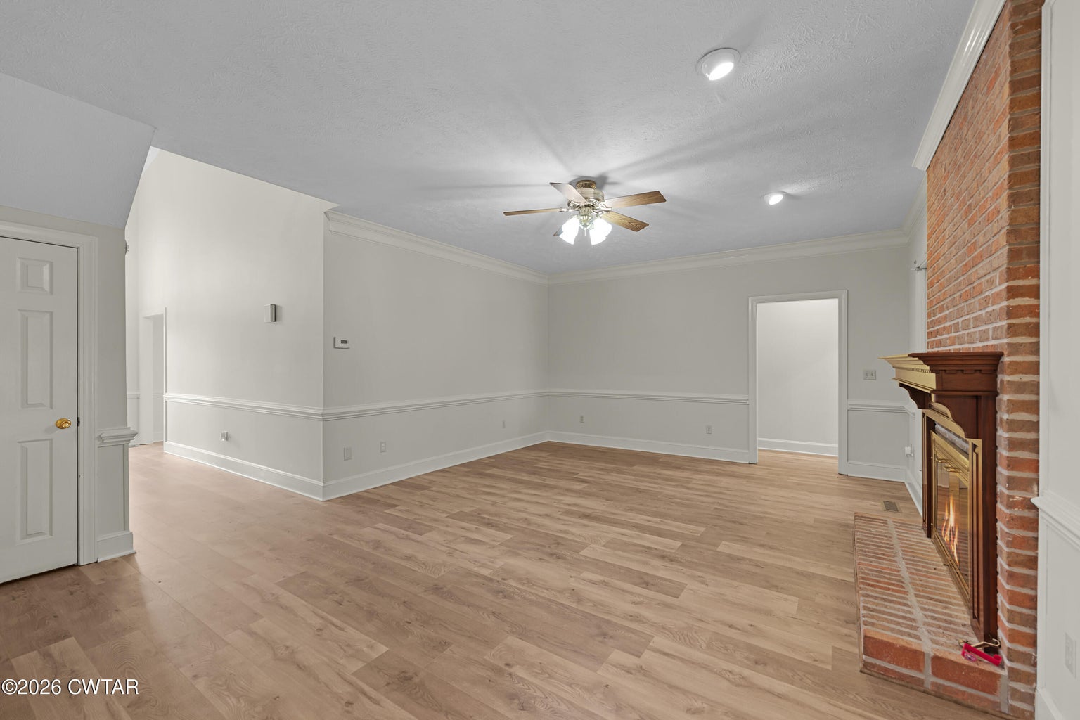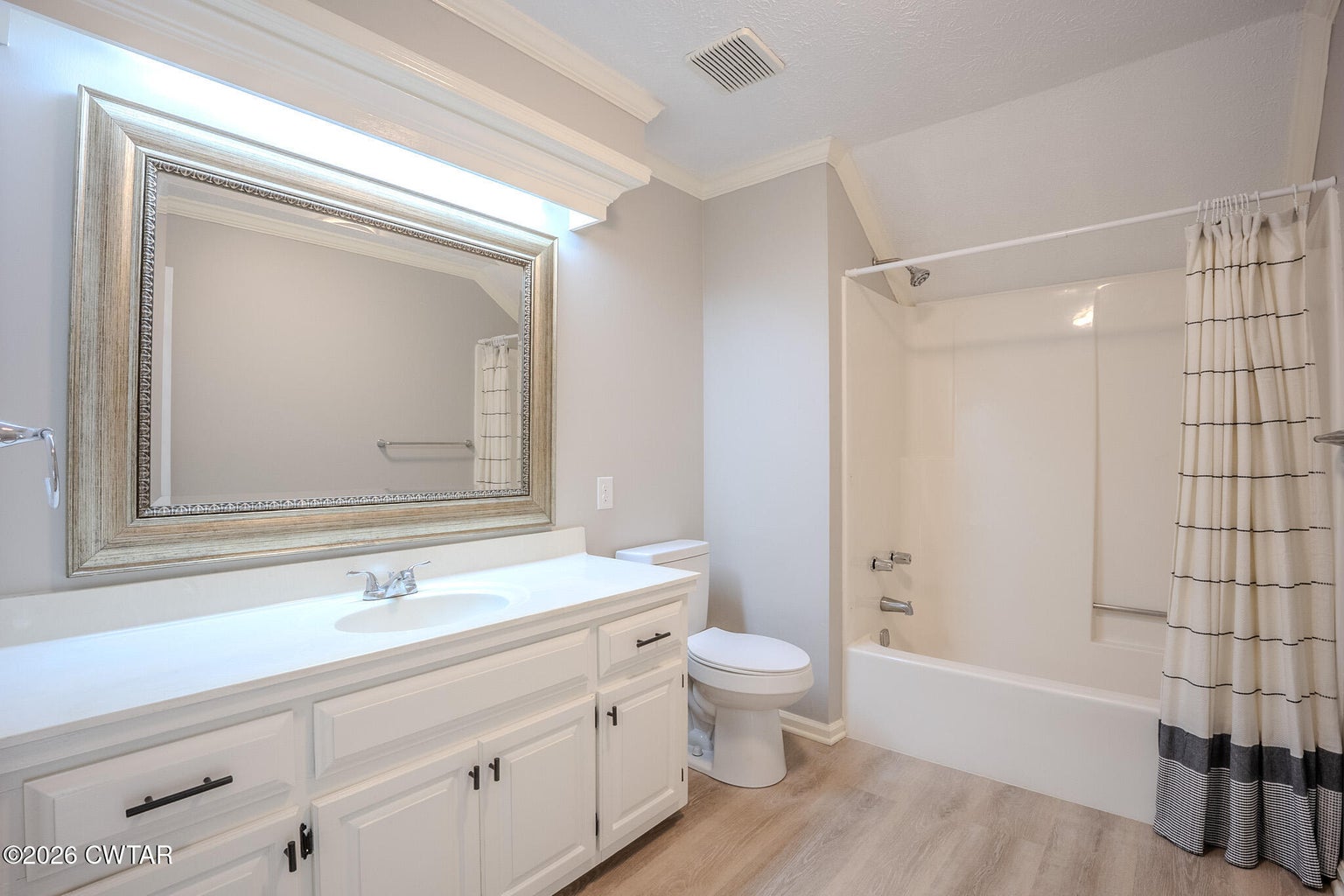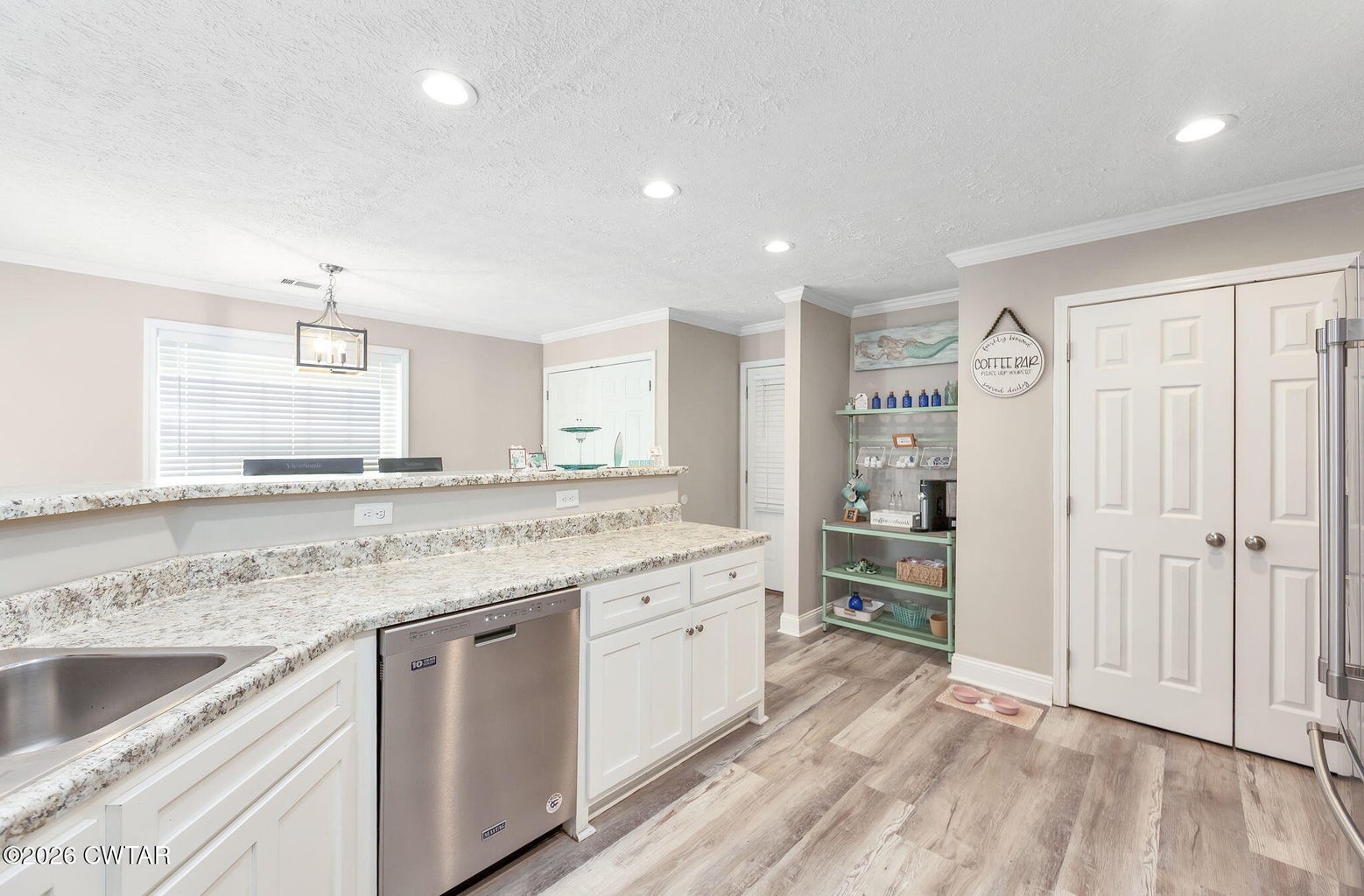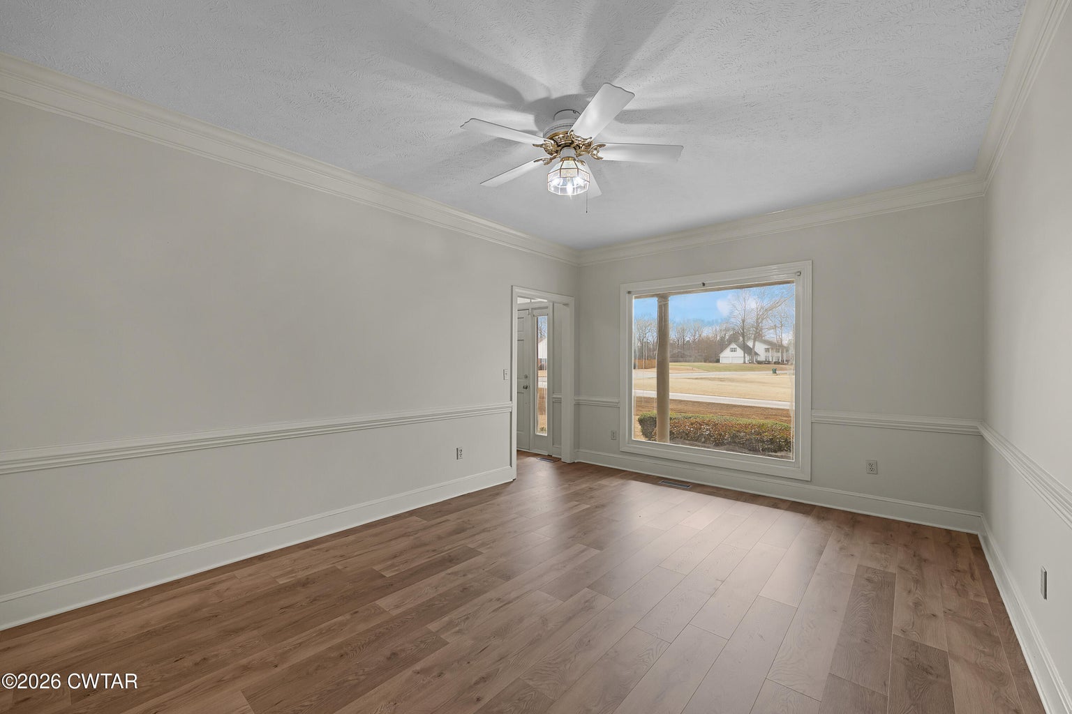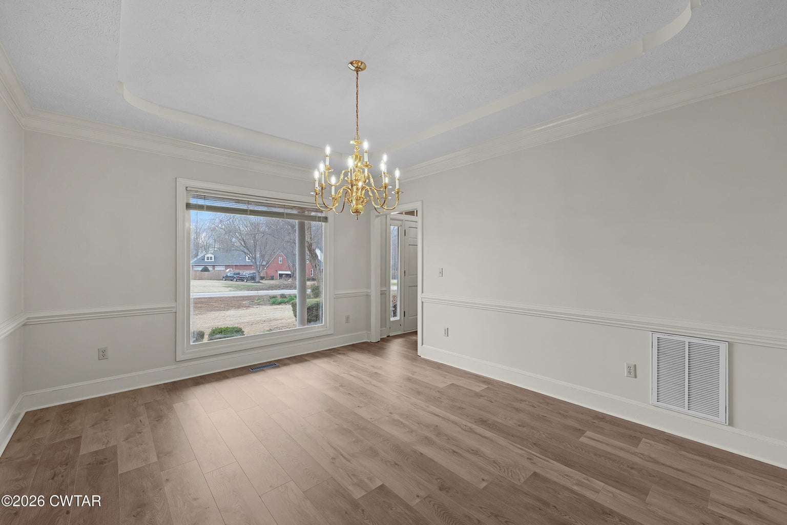 The mature shade trees enhance outdoor enjoyment while helping maintain a cooler, more comfortable setting during hot summer months. A relaxing covered front porch adds classic Southern charm — perfect for morning coffee or unwinding at day's end. Inside, enjoy durable wide-plank LVP flooring throughout — no carpet — paired with decorative crown molding and neutral paint colors.