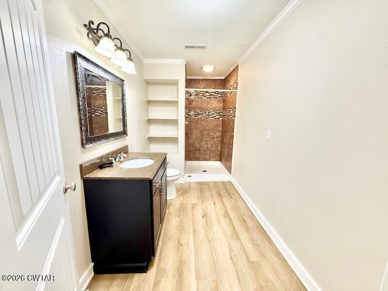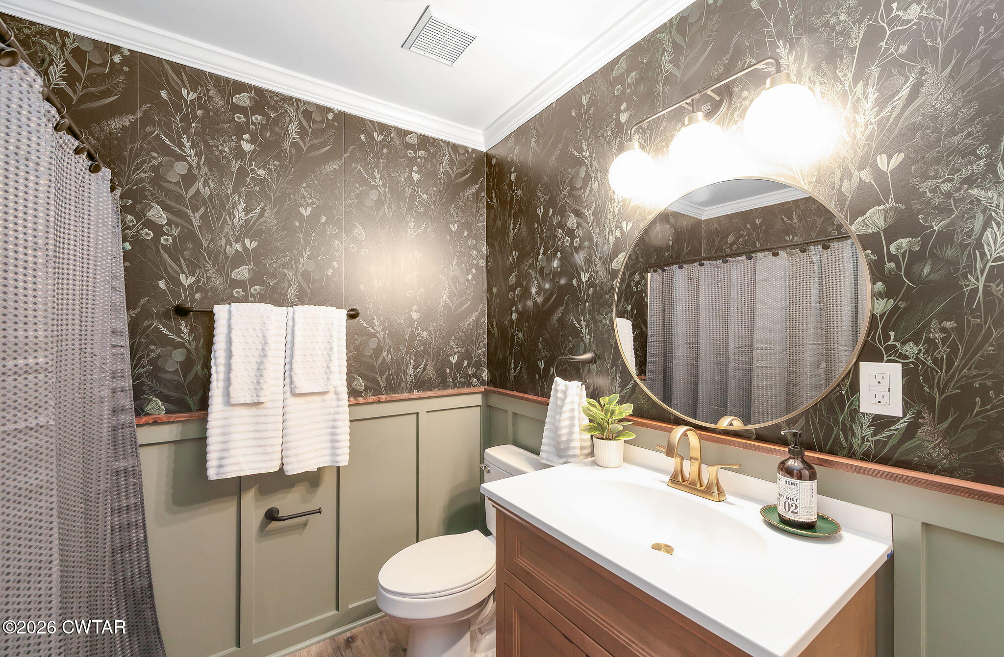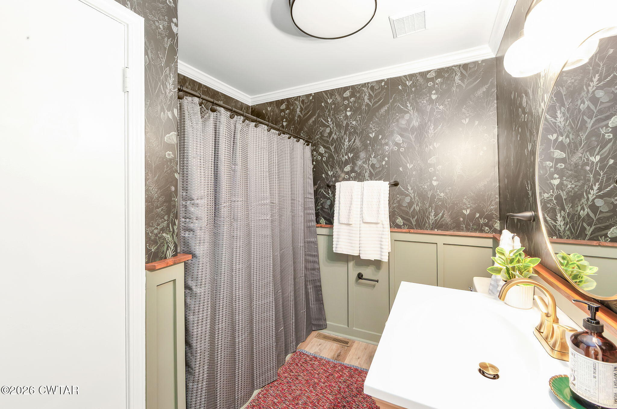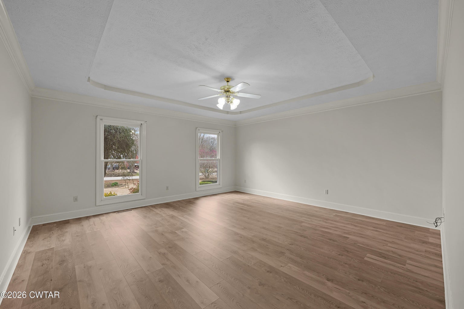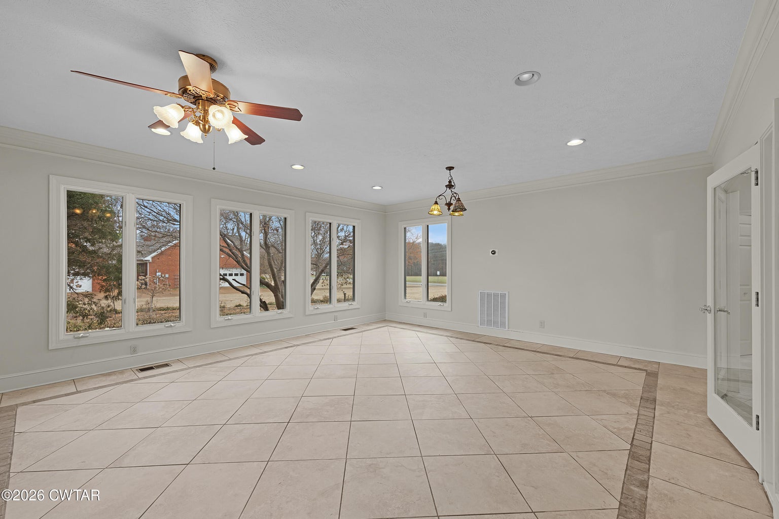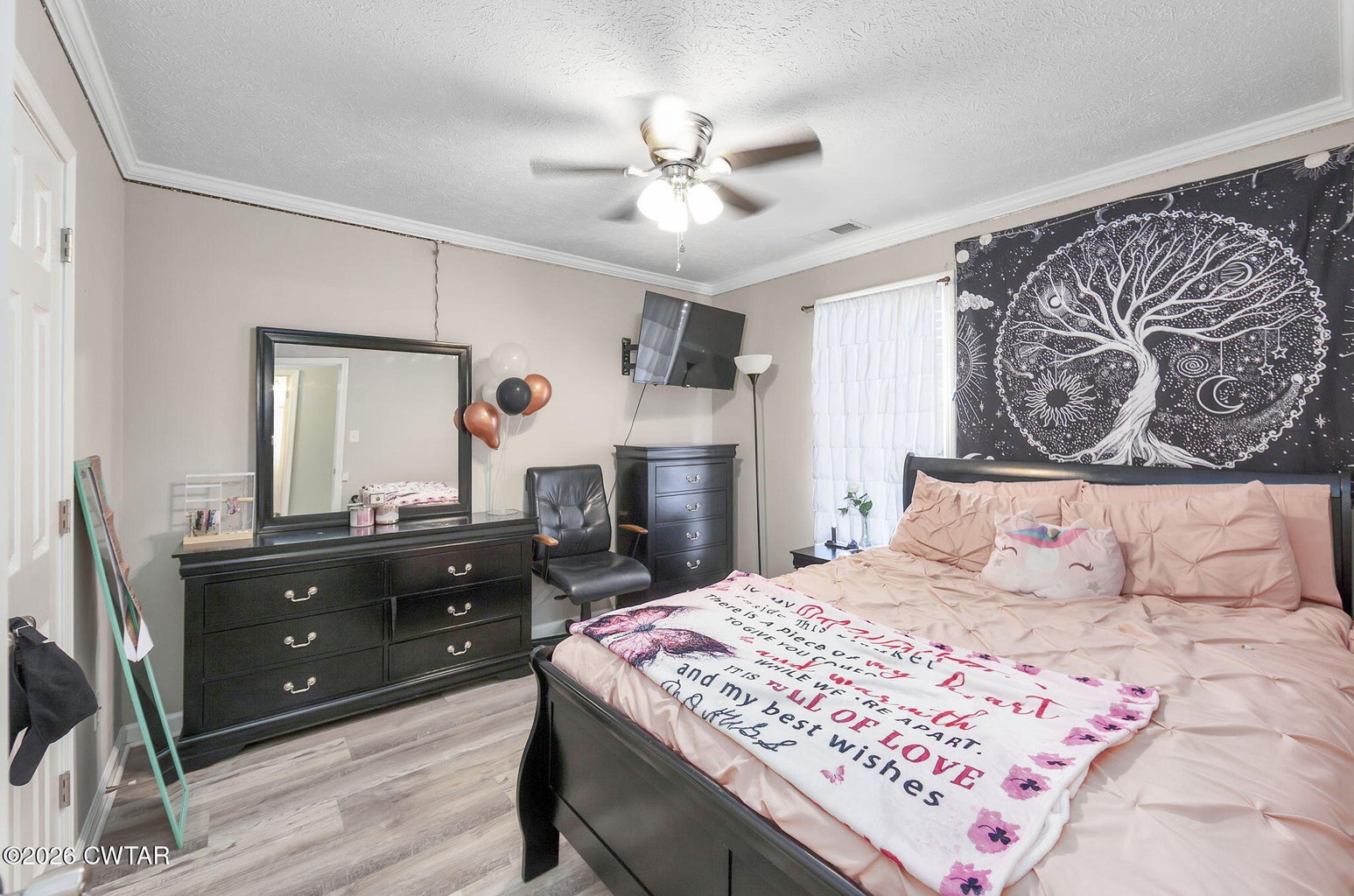 The mature shade trees enhance outdoor enjoyment while helping maintain a cooler, more comfortable setting during hot summer months. A relaxing covered front porch adds classic Southern charm — perfect for morning coffee or unwinding at day's end. Inside, enjoy durable wide-plank LVP flooring throughout — no carpet — paired with decorative crown molding and neutral paint colors.