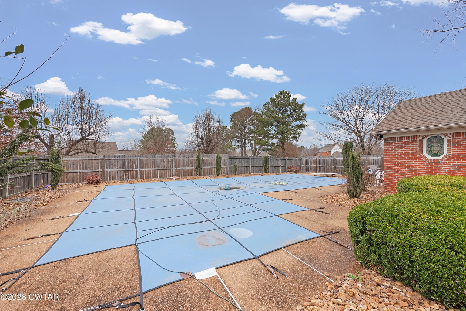 The dining room just off the kitchen and entry hall is perfect for family dinners. The inviting Sunroom just off the kitchen and den gives a beautiful view of the backyard and Pool. The den with Gas fireplace is the perfect gathering space for friends and family. The large primary bedroom with tray ceiling offers ample space for king bedroom furniture and still have room for relaxing and a quiet reading area. Just off the Bedroom is the primary bath with a double vanity, his and her closets, commode room, separate jetted tub and shower. There are three spacious bedrooms upstairs and 2 bathrooms with tub/showers and large vanities. You will enjoy the large pool with cover and pool house with a vanity and commode in a fenced area for privacy. You have a shed for lawn equipment and tools.