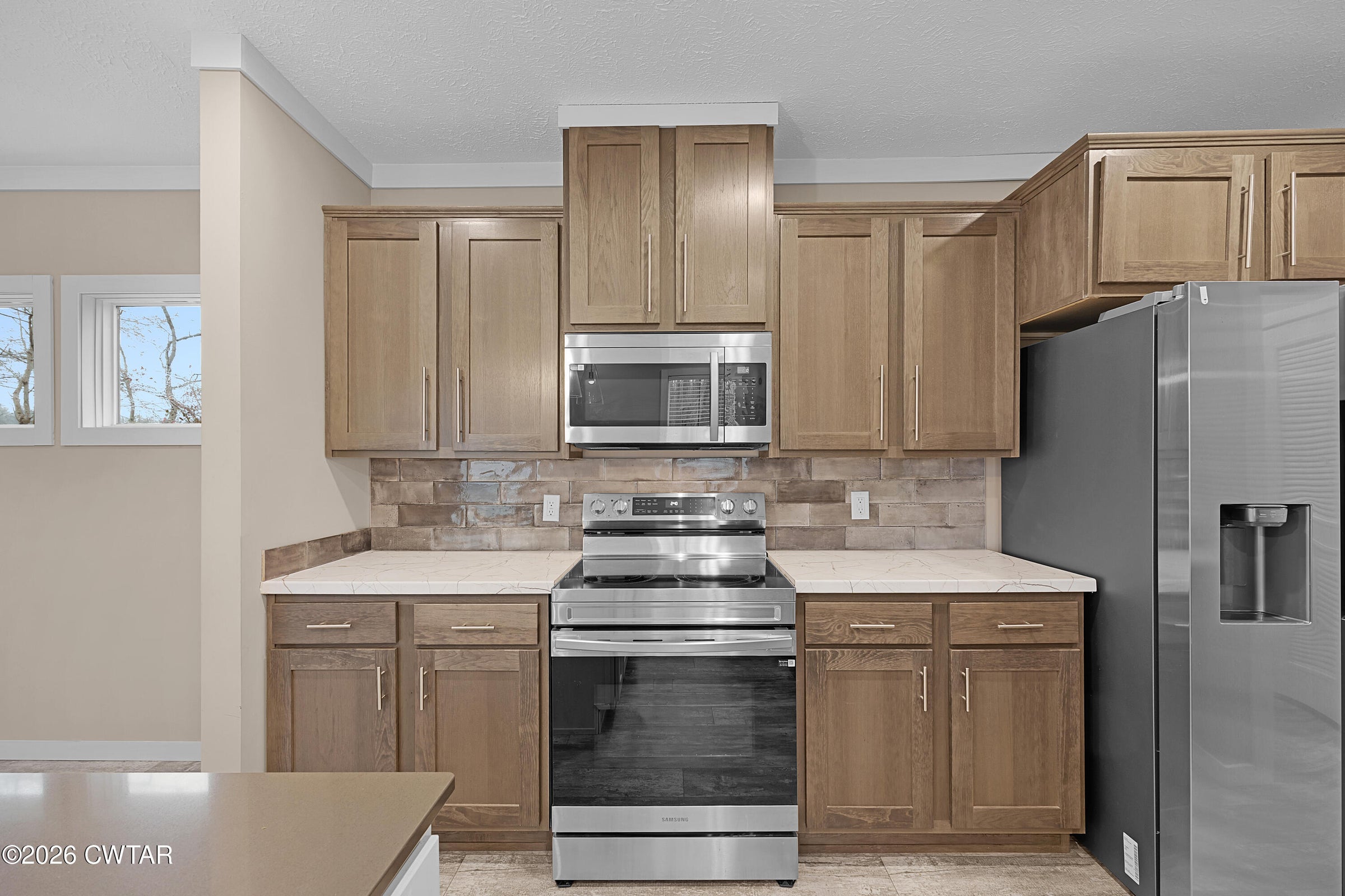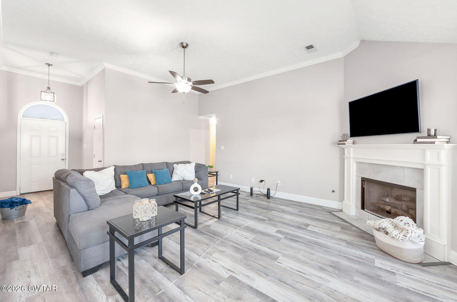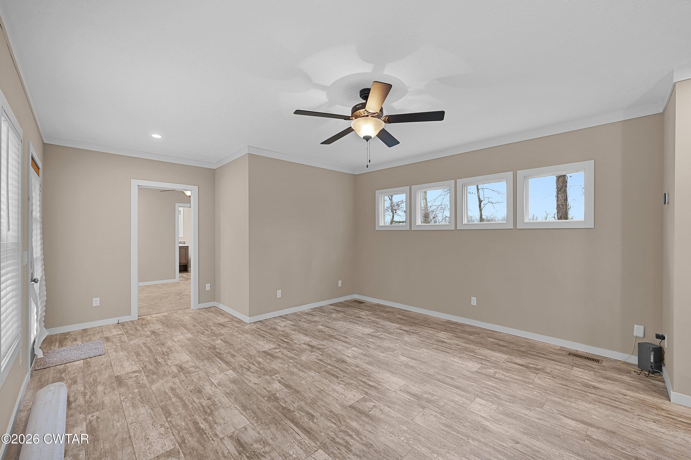 Welcome to 265 Chronicles Drive, a stunning contemporary ranch in the coveted Jabez Estates in Medina, TN. This 1.5-story, 4-bedroom, 2-bath home offers 2,154 heated sq. ft. of modern living space, including an office (which could also be a walk-in pantry) and a versatile 4th bedroom/rec room upstairs. Step inside to a split-bedroom floor plan with luxury vinyl plank and ceramic tile flooring throughout, hardwood stair treads—NO carpet! 9' ceilings downstairs, 2-panel arch top interior doors with bead board detailing, and lots of crown molding! The spacious great room features a gorgeous corner stacked stone gas log fireplace, perfect for cozy nights in.