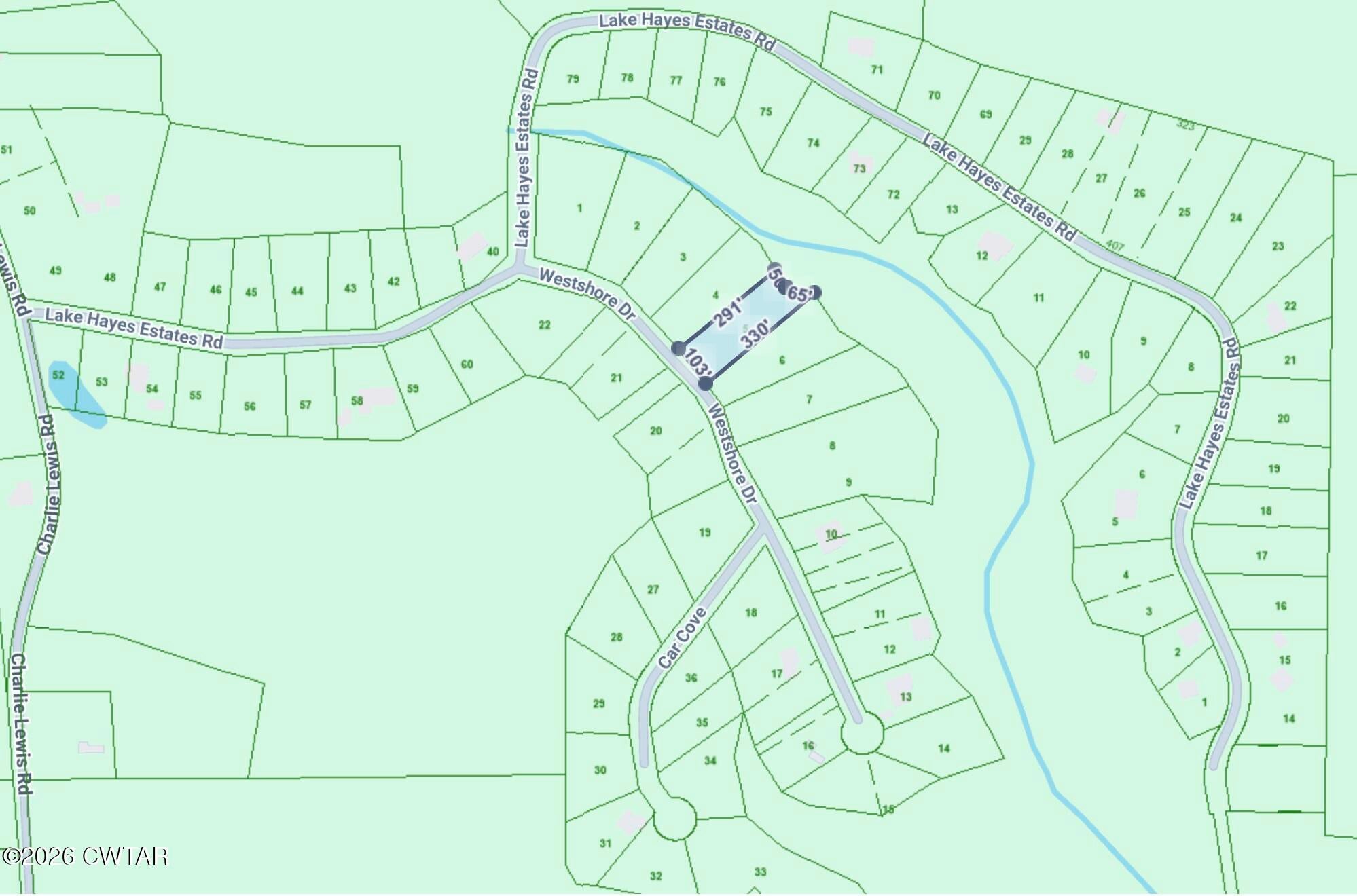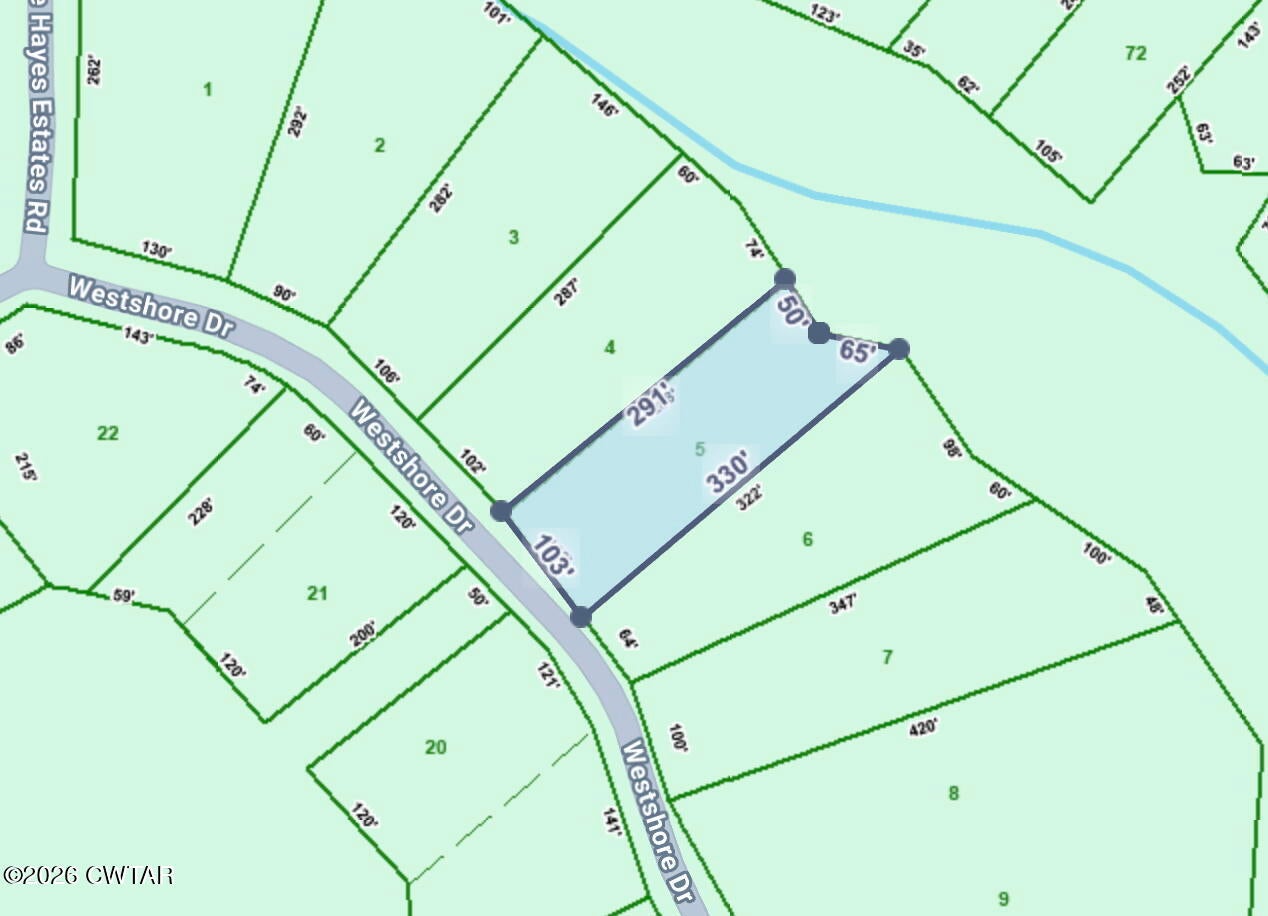 From the intersection of 45 Bypass and Christmasville Rd in Trenton, head east on Christmasville Rd. At the 30-way stop, turn left to continue on Christmasville Rd. Left on Charlie Lewis Rd. Right on Lake Hayes Estates Rd. Right on Westshore Dr. Lot 5 is on the left.