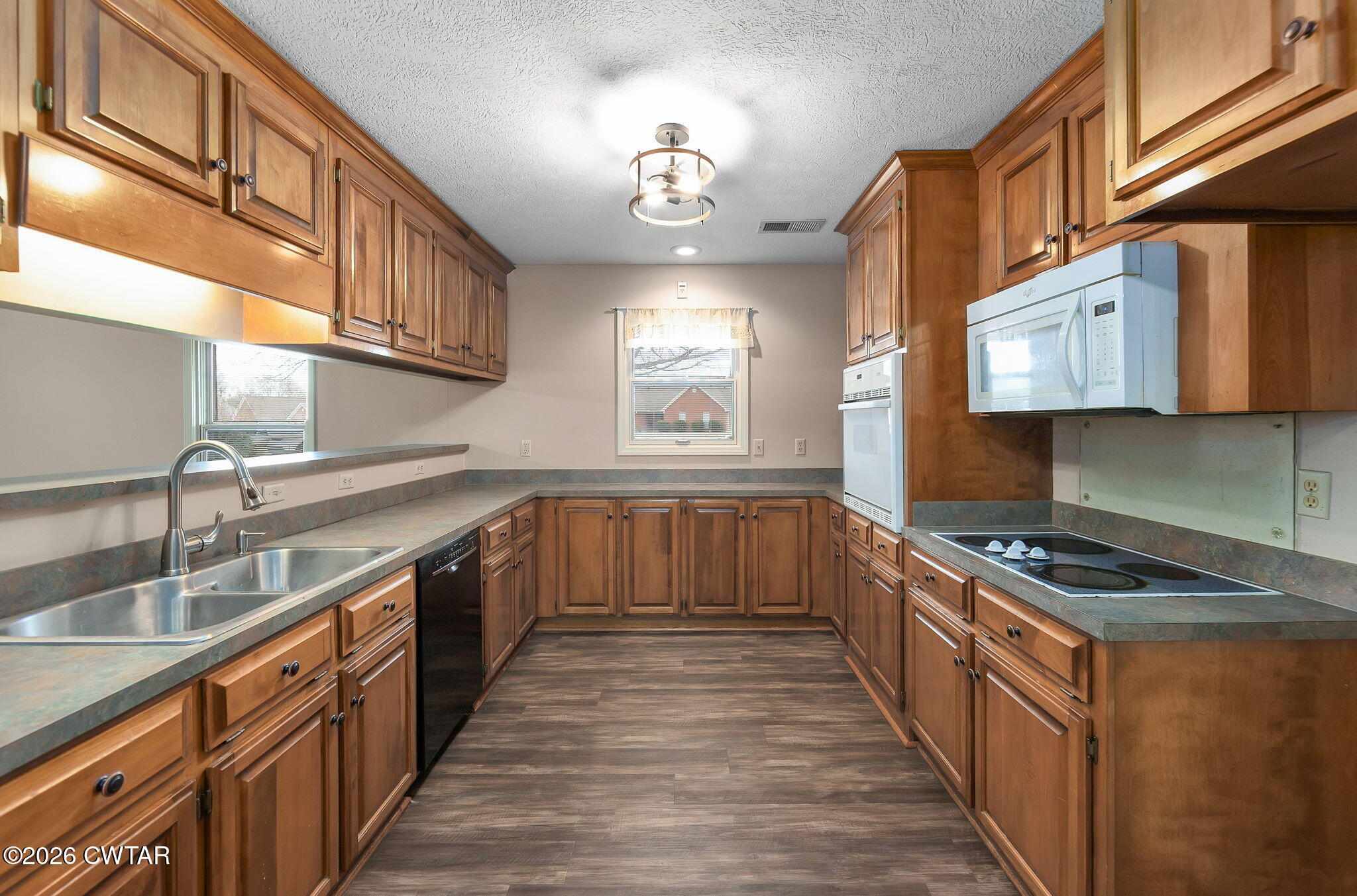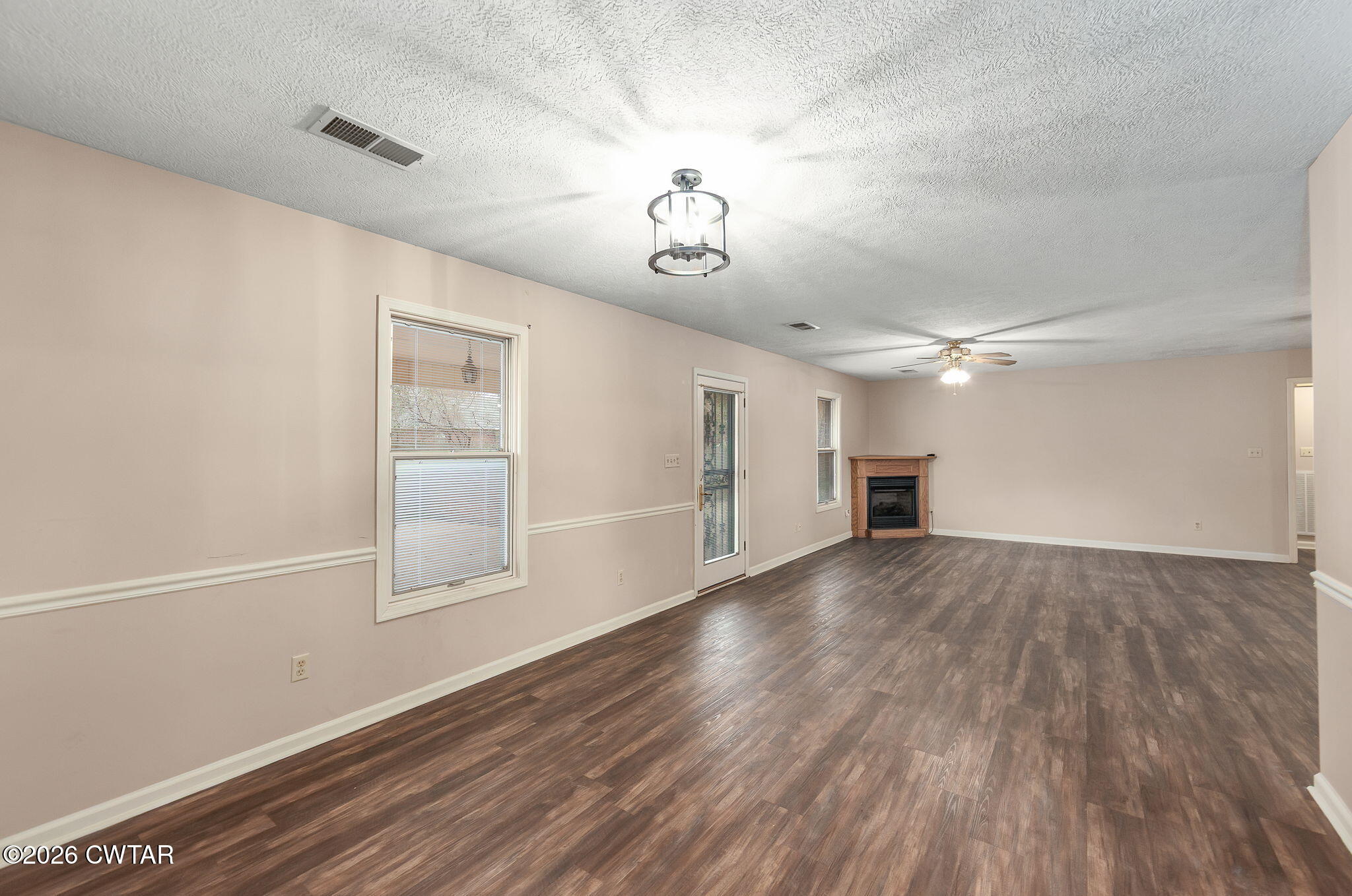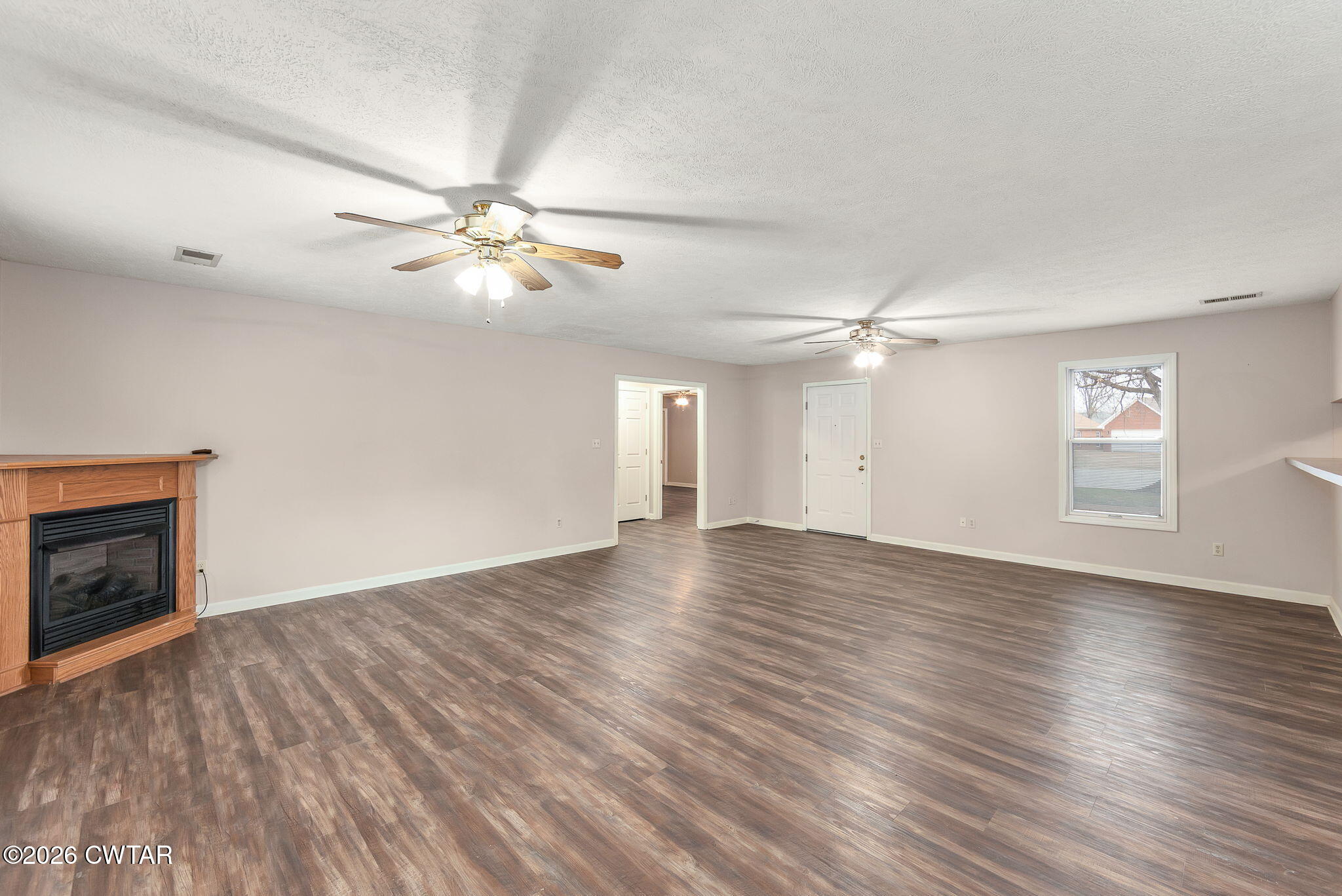 You'll love the open living area with a fireplace, updated vinyl flooring, and light neutral finishes. Kitchen includes built-in appliances, a pass-through with bar seating for easy everyday living. Spacious laundry area, main floor bedrooms, and a great backyard setup featuring a covered patio, privacy fence, and storage shed.